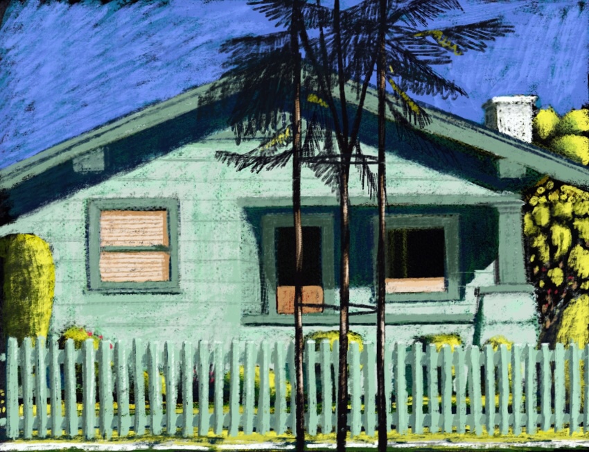 A man came out of the house next door to the one I was drawing and after putting a painting in the boot of a car, turned to me and waved and I waved back.